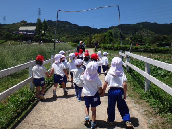 植物や動物と触れ合い、年中さんは搾乳体験もしてきました。