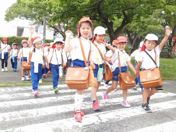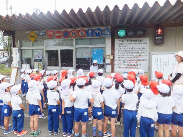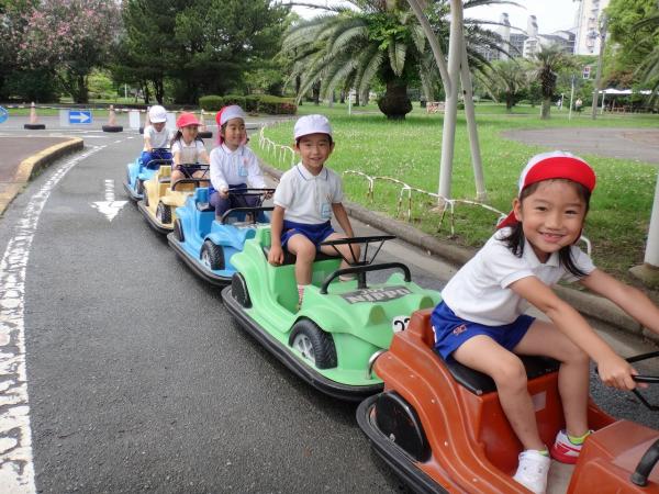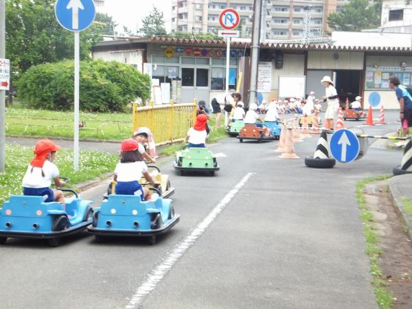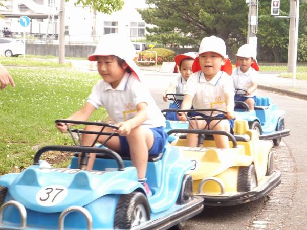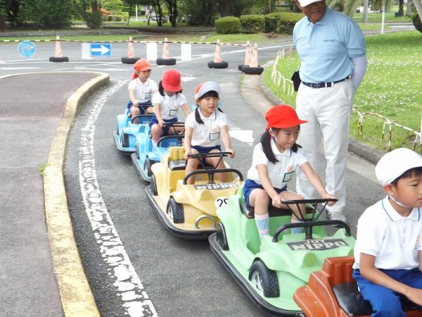 大きな遊具で遊んだり、ゴーカートの体験を通じて交通安全を学んできました。