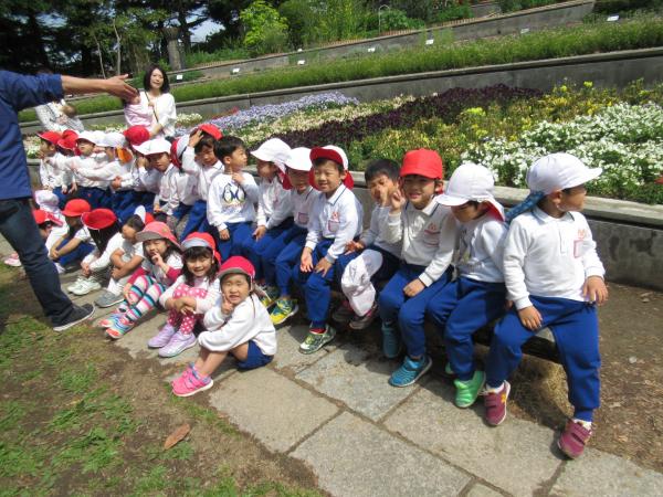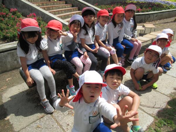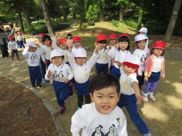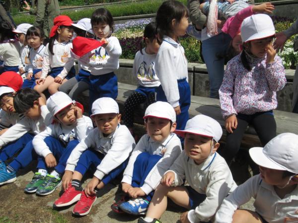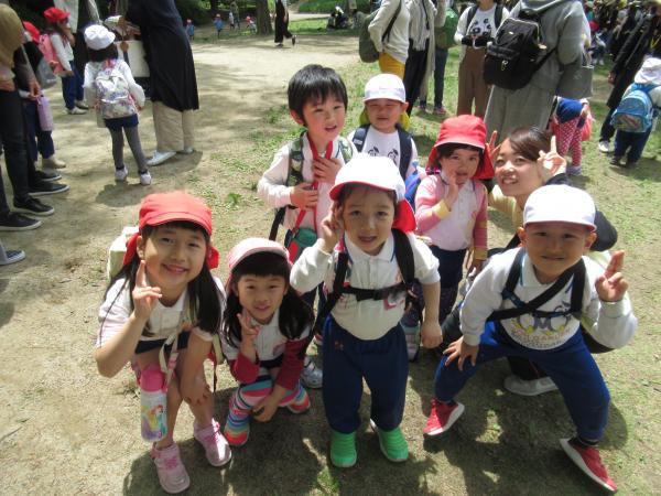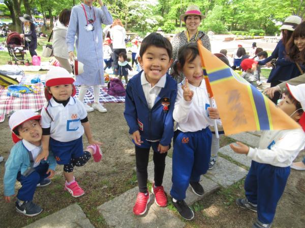 新たなクラスのお友達と遠足に行ってきました。晴天の中、みんなでお弁当を食べて元気いっぱいに遊びました。 これから1年間、先生・お友達と楽しく過ごしましょう。