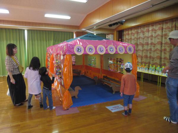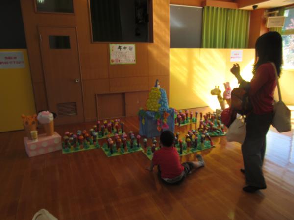 みんなが楽しみにしていた秋まつり。 秋晴れの中、バルーンショーをみたり、お家の方とゲームをしたり、美味しいものを食べたり楽しい1日でしたね。 「おかしの国」をテーマにみんなで作った作品も展示しました。
